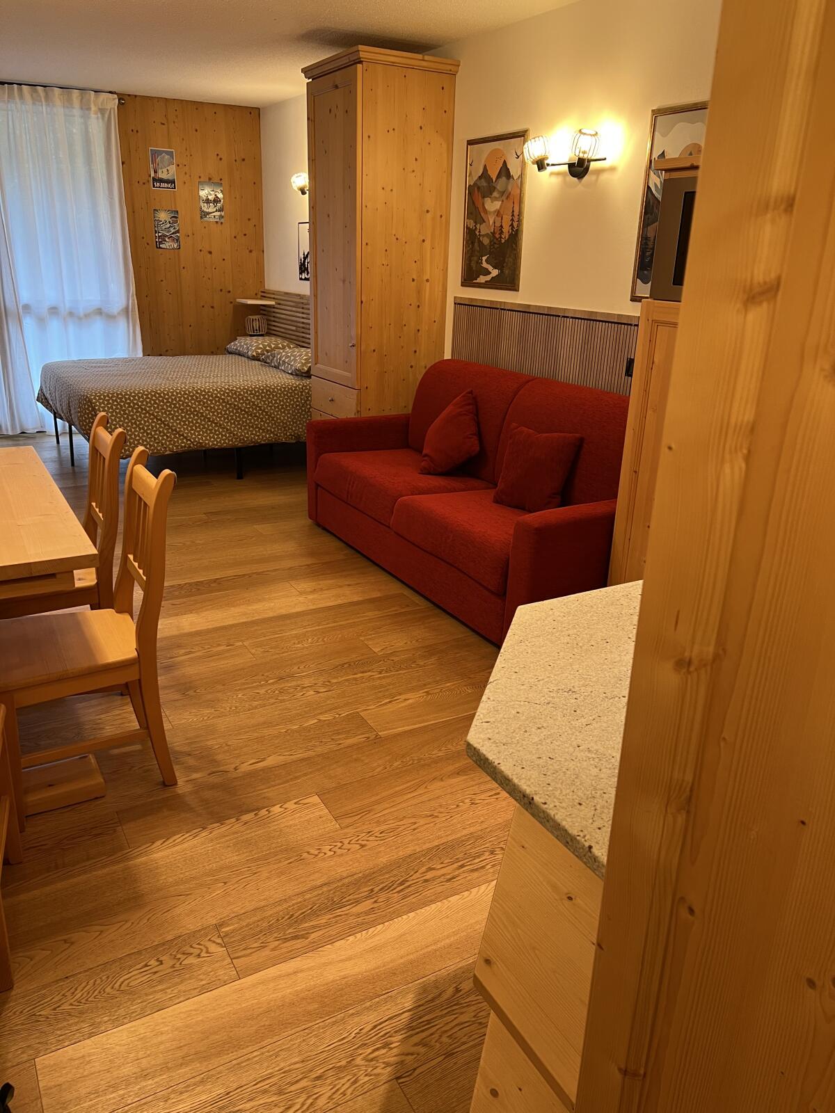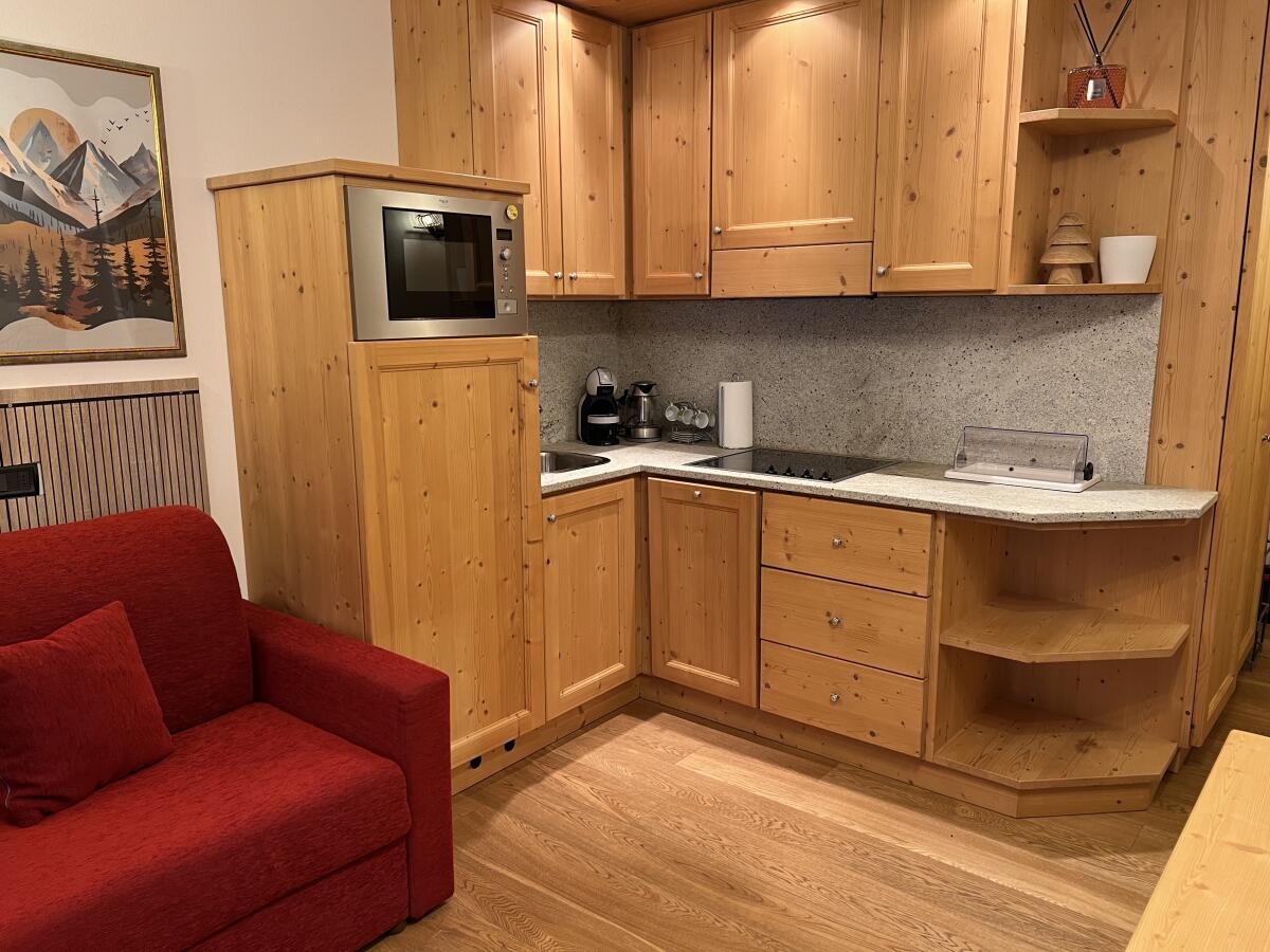 Komfortables Studio-Apartment in der Residenz „Valtellina“, direkt an den Skipisten von Santa Caterina Valfurva und hundert Meter vom Stadtzentrum entfernt. Die Wohnung besteht aus einem Wohnbereich bestehend aus einer kompletten Küchenzeile, einem Schlafsofa und einem Essbereich sowie einem Schlafbereich bestehend aus einem Doppelbett. Im Erdgeschoss befindet sich ein Skiraum, in dem Sie Ihre Ausrüstung aufbewahren können. Überdachte Parkplätze stehen je nach Verfügbarkeit zur Verfügung.