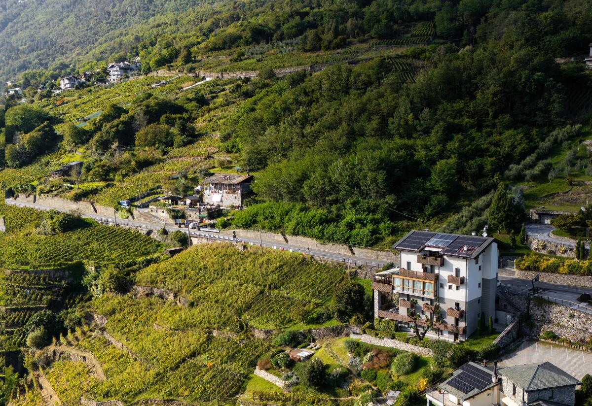 Mitten in einem natürlichen Ambiente, umgeben von Weinbergen und ein atemberaubender Blick über das Tal und die Orobischen Alpen im Valtellina und dazu die nur 3 Autominuten entfernte Provinzhauptstadt Sondrio. Professionalität, Einsatzbereitschaft, ein warmer und freundlicher Empfang – das bietet das WIne Hotel Retici Balzi seinen Gästen. Das Wine Hotel Retici Balzi verfügt über 11 Zimmer, die alle den Namen einer der elf großen Weine des Valtellina. WellnessBereich auf Anfrage mit Jacuzzi Sauna und Shower.