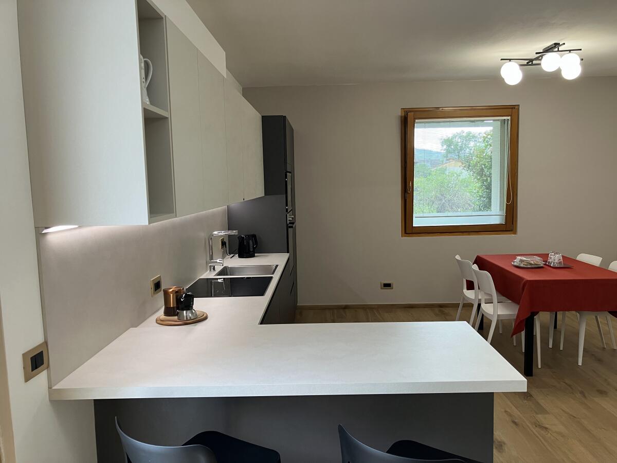 Nagelneues Ferienhaus im Erdgeschoss mit Zugang zu einem großen Garten, privatem Parkplatz auf einem umzäunten Platz, sehr schnellem kostenlosem WLAN mit Glasfaser, ausgestatteter Terrasse für angenehme Mittagessen und Aperitifs im Freien, Skiaufbewahrung in einer privaten Garage und Fahrradaufbewahrung mit der Möglichkeit zum Aufladen von Elektrofahrzeugen. Es hat n. 5 Betten, davon Nr. 3 in einem Zimmer mit einem Doppelbett und einem Einzelbett sowie einem Doppelschlafsofa im Wohnzimmer. Die Küche ist mit allem ausgestattet, was Sie brauchen (Geschirrspüler, Backofen und Mikrowelle, Gefrierschrank, selbstverständlich sind Teller, Gläser, Tassen usw. vorhanden), das Badezimmer ist groß und verfügt über eine komfortable Dusche. Zu den verfügbaren Dienstleistungen zählen feinste Tisch-, Bad- und Bettwäsche.