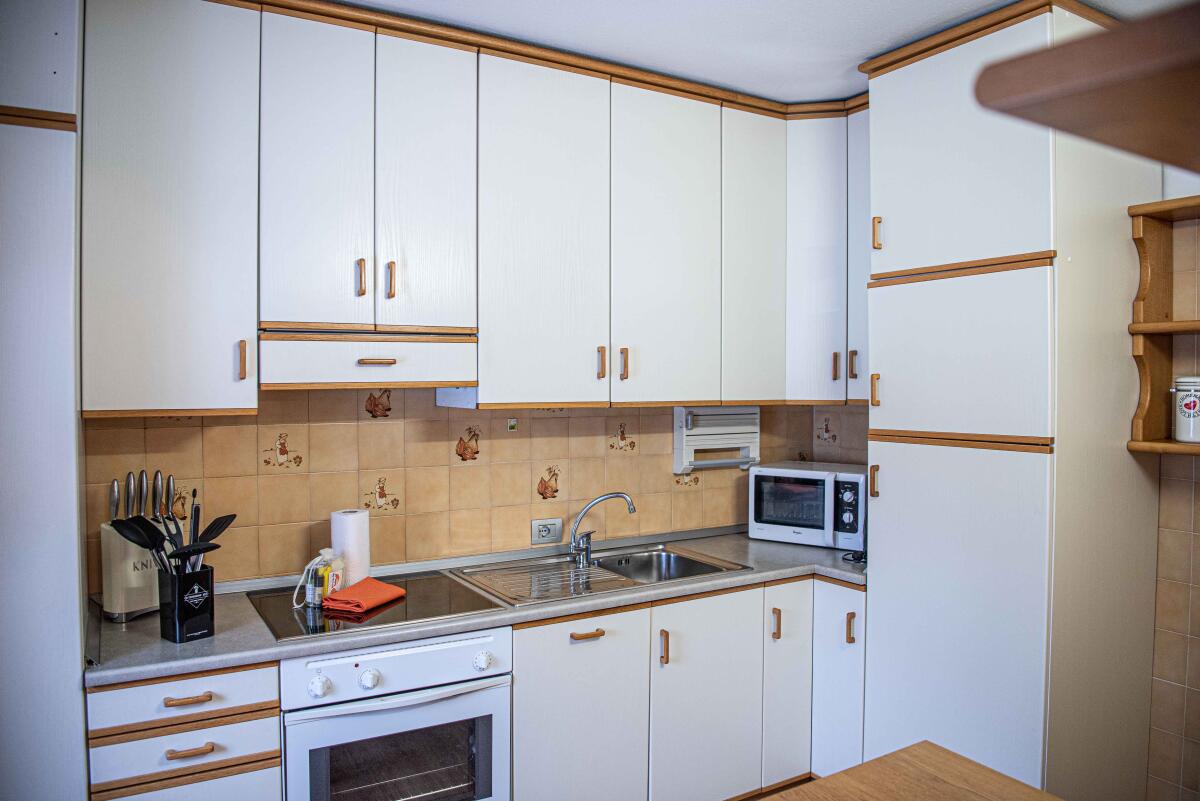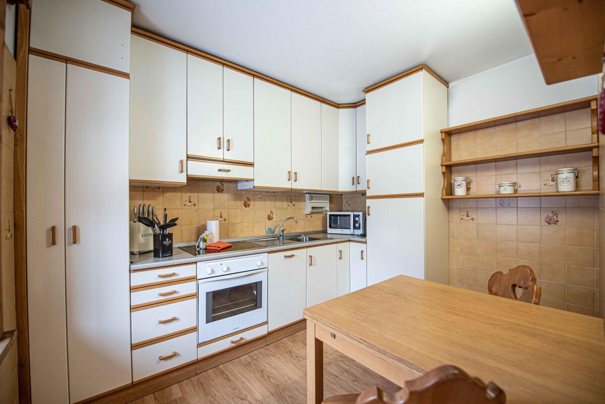 Perfect for families with children, the apartment features a fully equipped kitchen, a panoramic balcony with mountain views, and a private ski storage area.