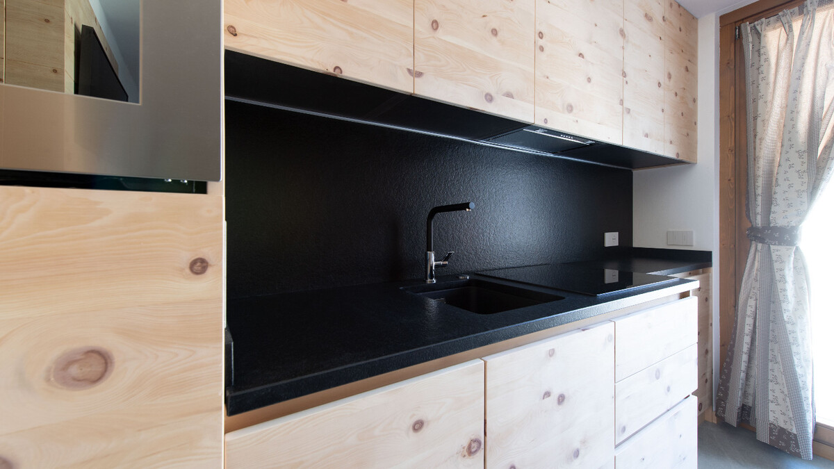 L'appartamento è dotato di rete wi-fi, forno combinato, lavatrice, lavastoviglie, posto auto in garage, bike room, ski room e giardino ad uso comune.
