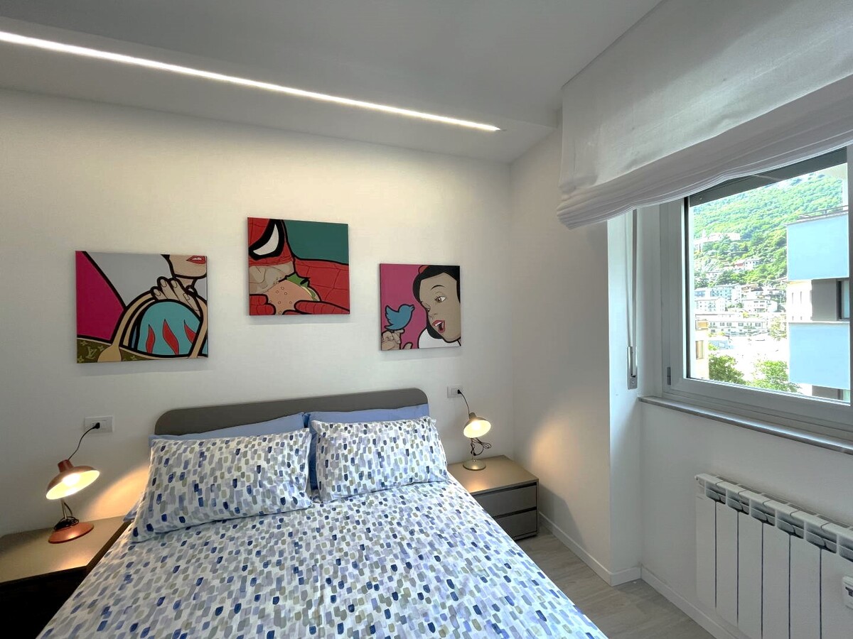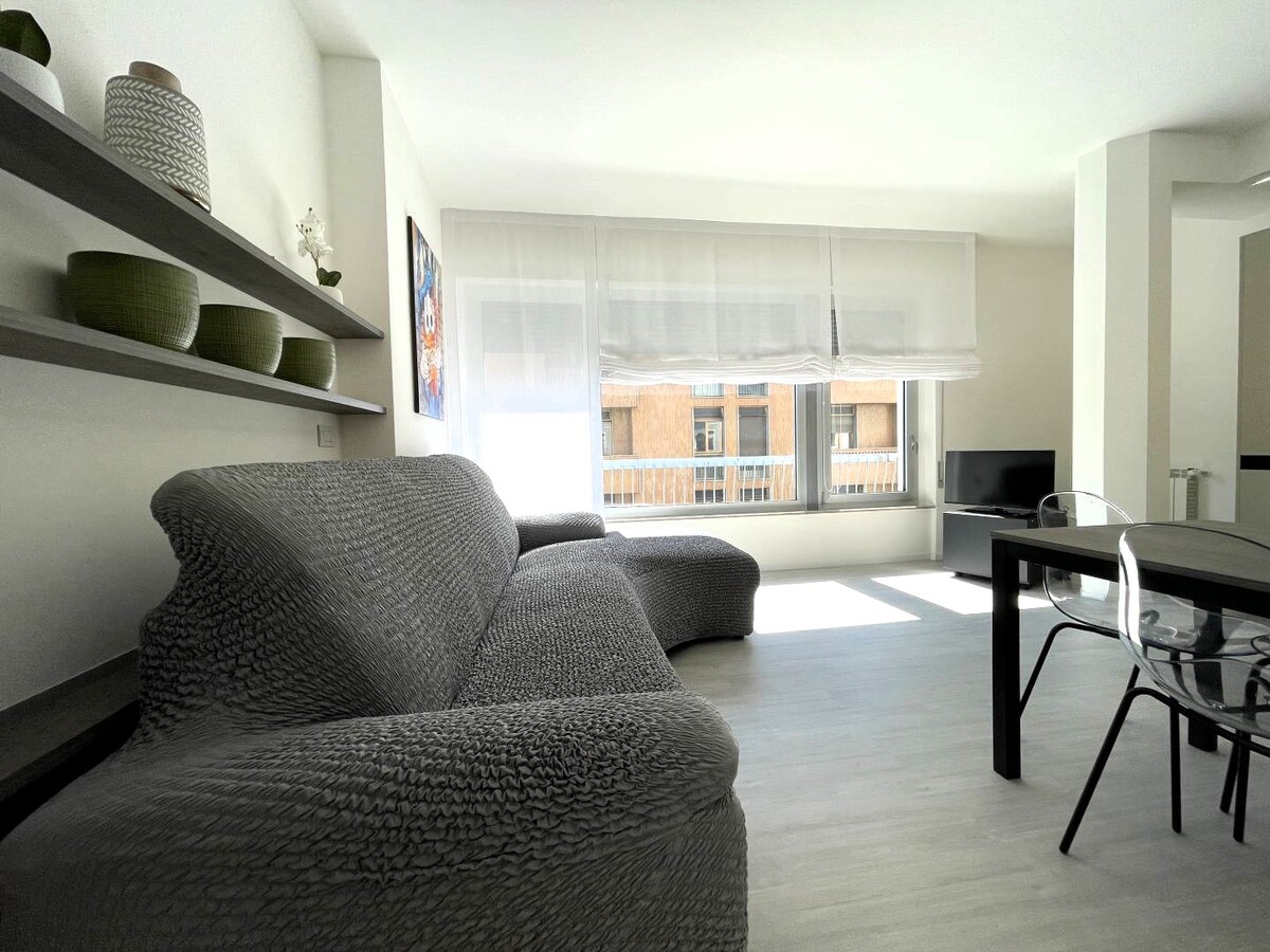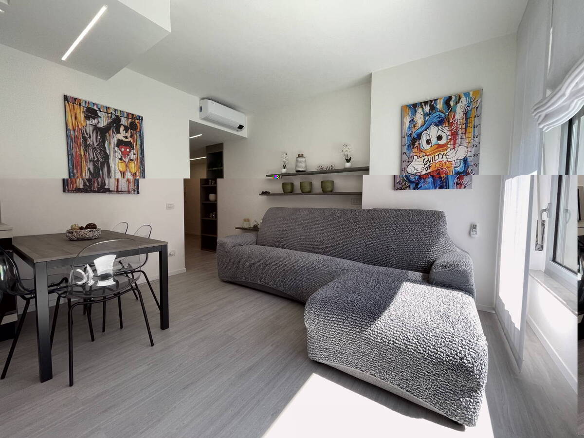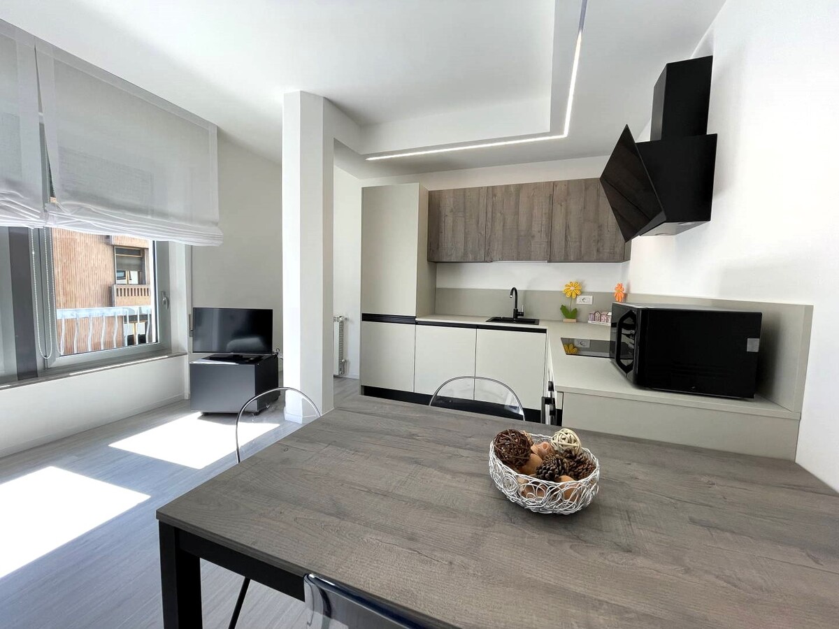 Per rendere il soggiorno ancora più piacevole, l'appartamento dispone di un condizionatore nella zona giorno. La luminosità dell'ambiente è garantita dalla grande finestra del soggiorno, che offre una vista sulle cime circostanti e sul centro città.