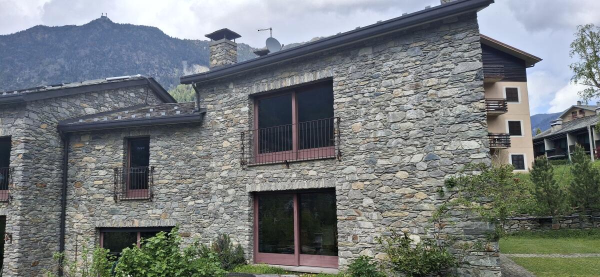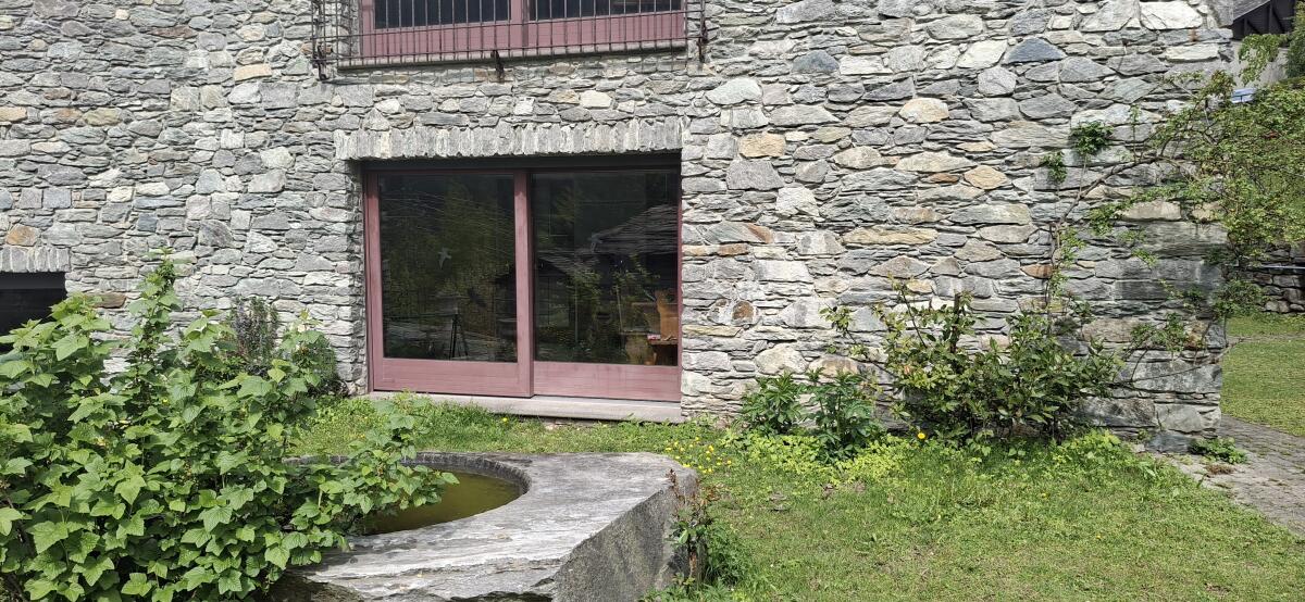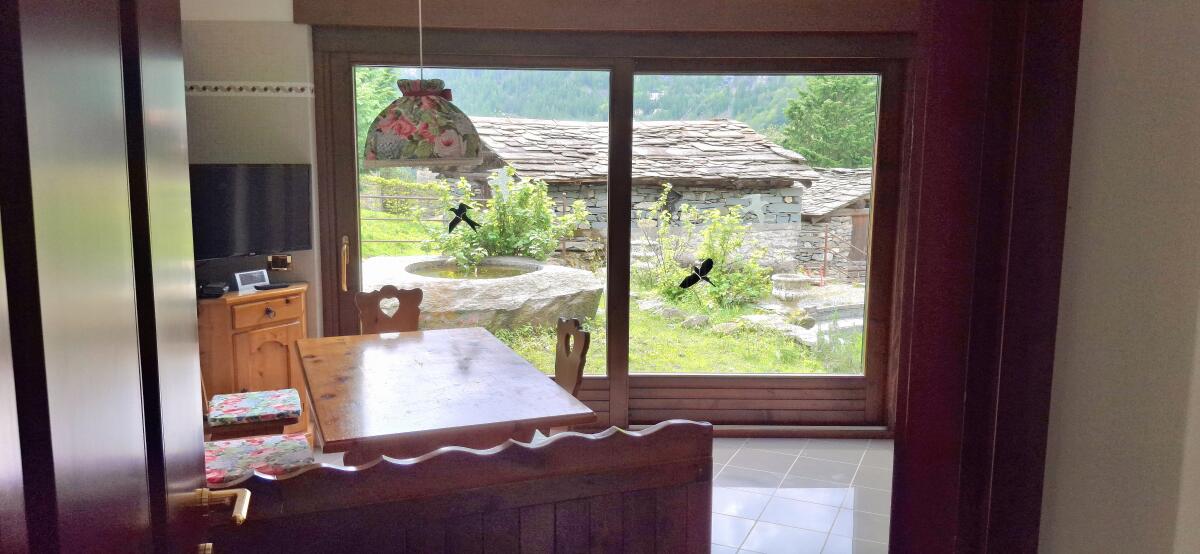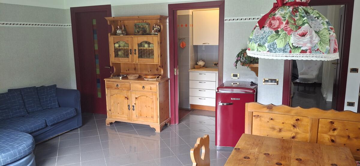 L’appartamento si affaccia su un giardinetto non delimitato che spazia su un più vasto prato lasciato a pascolo e completamente cintato.