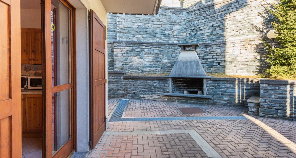 l’alloggio è accessibile tramite una rampa di scale che porta ad un pianerottolo / terrazzo in comune con il secondo alloggio di “Lanterna Apartments”. In tale zona è possibile usufruire della zona barbecue, questo appartamento ha un giardino privato con tavolino sedie e ombrellone; tale spazio può anche essere utilizzato per depositare lo stendino ed i propri panni da asciugare.